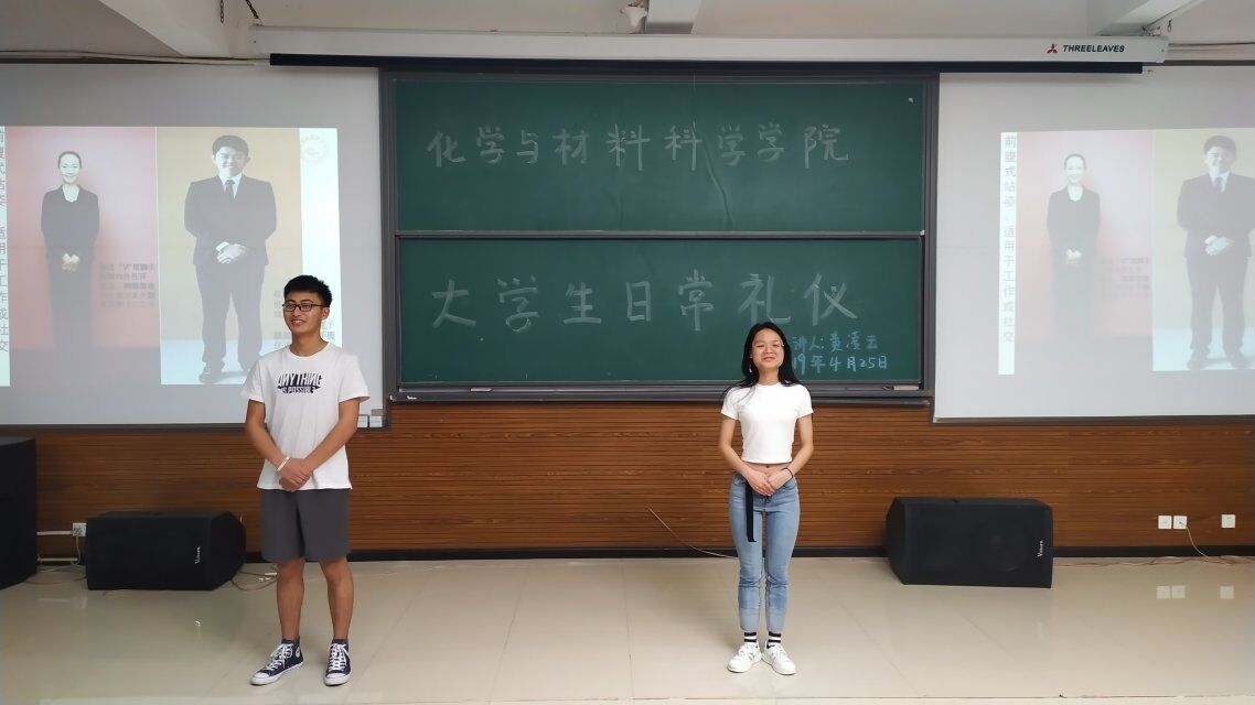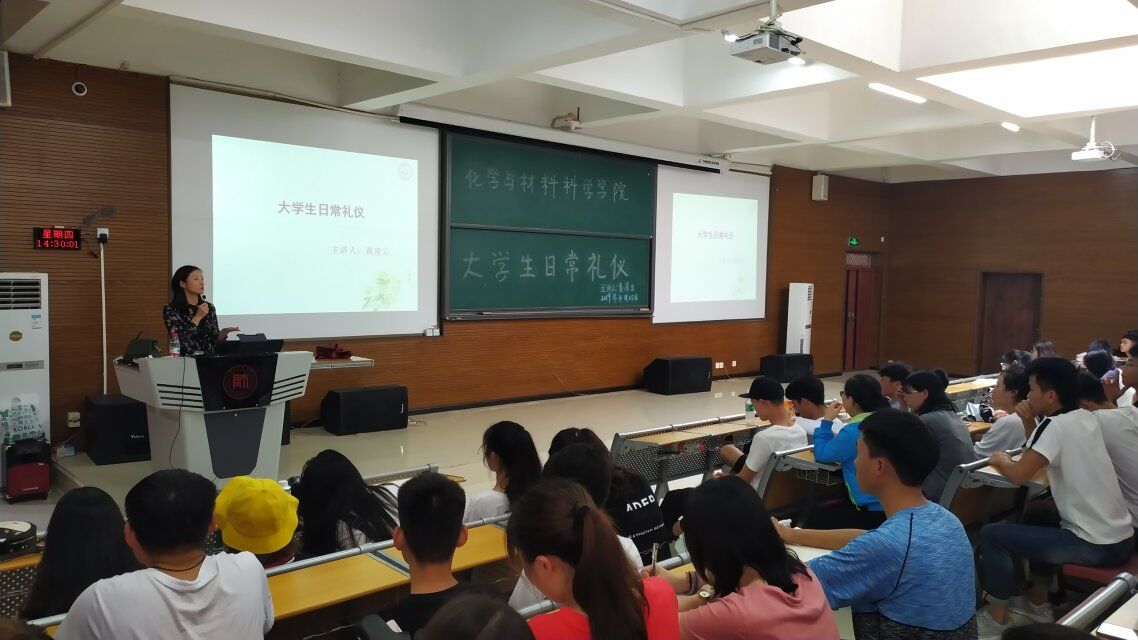 为了提升在校老员工的日常礼仪意识,强化个人卫生观念,4月25日下午14:30,化材公司在公教6202进行“老员工日常礼仪”的主题讲座。参与本次讲座的为18级全体同学。主讲人为18级辅导员黄凌云。