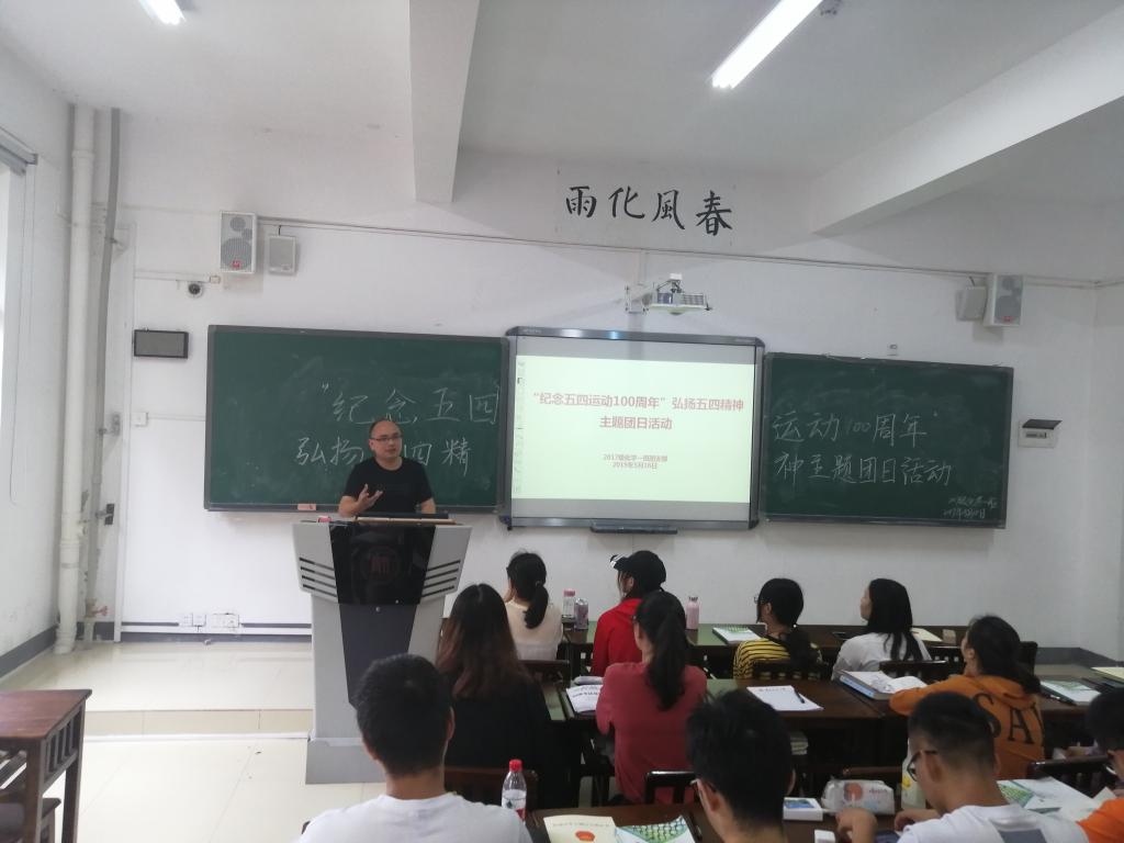 为深入学习贯彻习近平总书记在五四运动100周年大会上的重要讲话精神,在全院开展“青春心向党˙建功新时代”青年大学习系列活动。5月16日上午,williamhill威廉希尔官网团委书记熊树林参加2017级化学一班团支部“纪念五四运动100周年˙弘扬五四精神”主题团日活动。