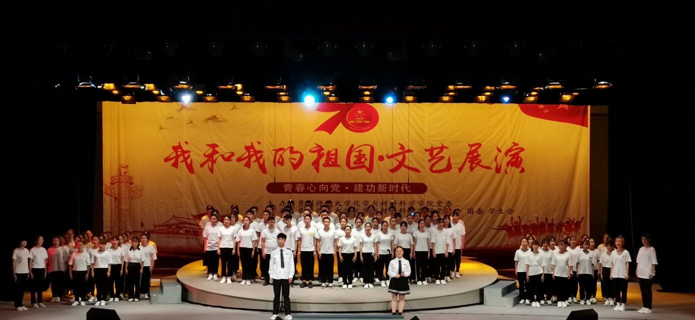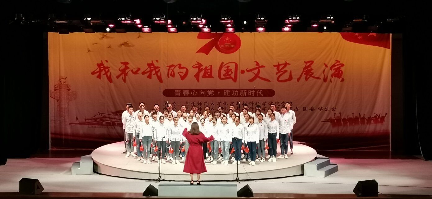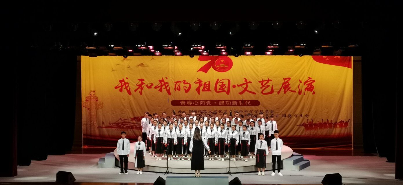 文艺展演在院合唱团带来的《我和我的祖国》中拉开帷幕。来自各班级的表演为现场观众带来了一场视听盛宴,表达着化材人对祖国的热爱,讴歌着党的丰功伟绩和新中国成立70年来的沧桑巨变,更唱出美好幸福的生活。《黄河大合唱》、《我的中国心》等歌曲让我们回忆峥嵘岁月;《国家》、《歌唱祖国》、《我爱你中国》等歌曲展中国今朝风采;《走进新时代》、《我们都是追梦人》等歌曲鼓舞我们望盛世长宏。最后由领导、老师及全体参演人员合唱《没有共产党就没有新中国》,音乐旋律响起,全场起立,挥舞国旗,深情歌唱,共同歌颂党和祖国,为新中国70岁生日诚挚献礼,文艺展演圆满落下帷幕。