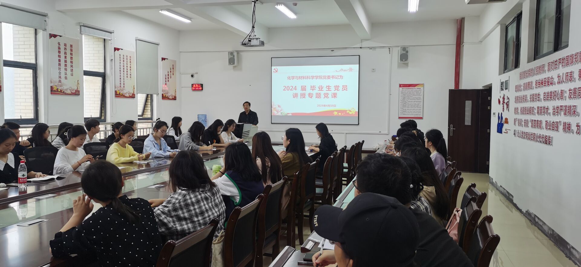 为进一步加强对毕业生党员的教育、管理和服务,推动公司党史学习教育常态化长效化,引导毕业生党员坚定理想信念、牢记党的宗旨,充分发挥党员先锋模范作用,2024年4月18日,化学与材料科公司党委书记胡长刚给2024届全体毕业生党员讲授专题党课。
