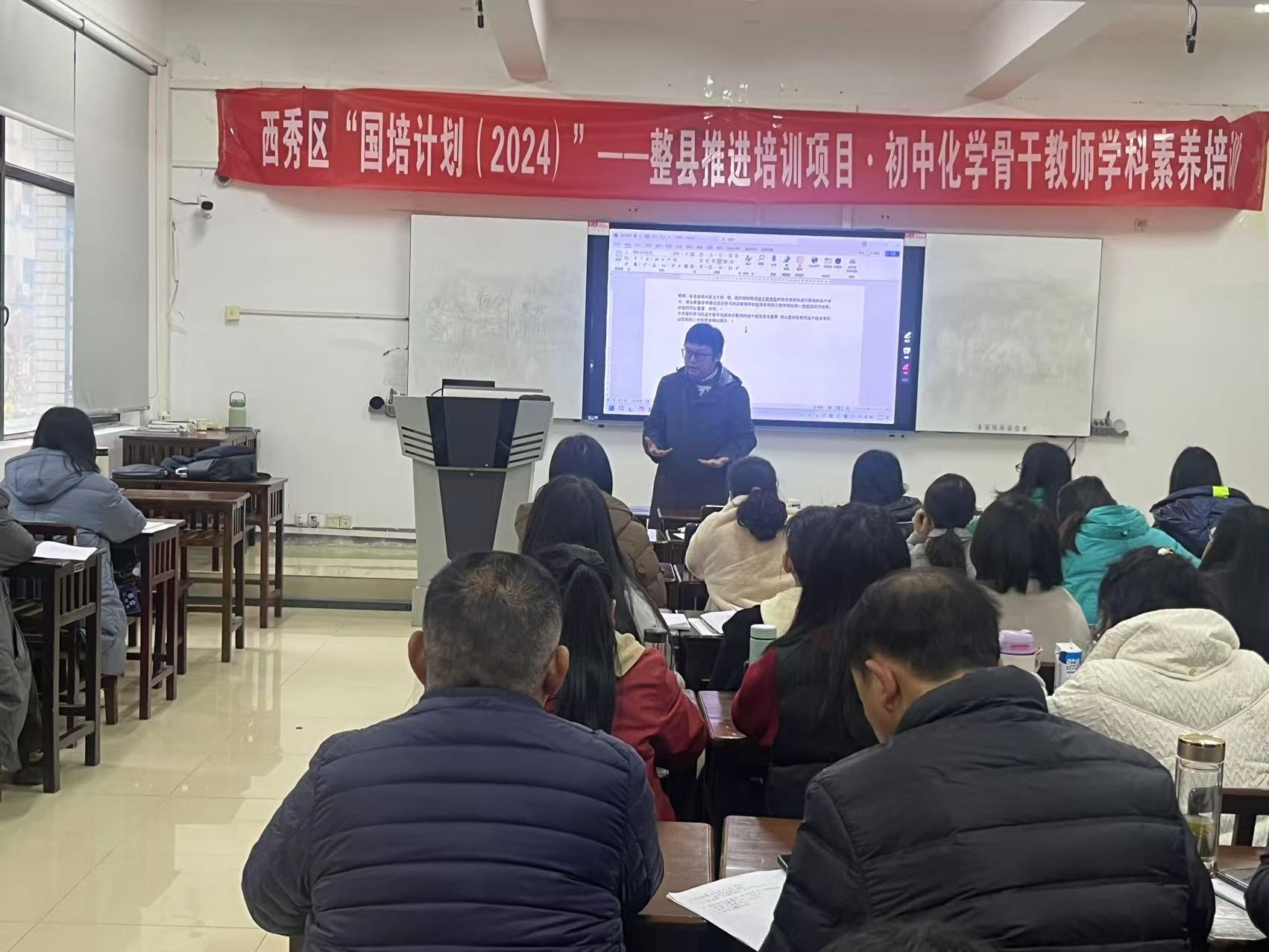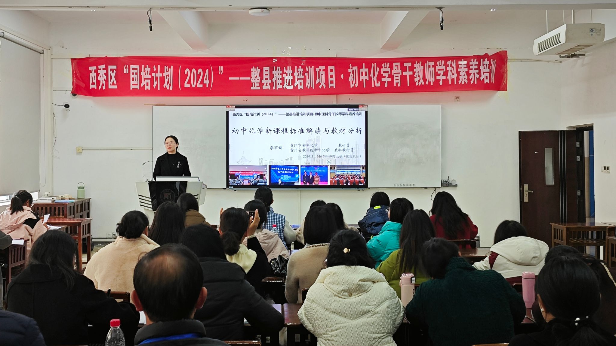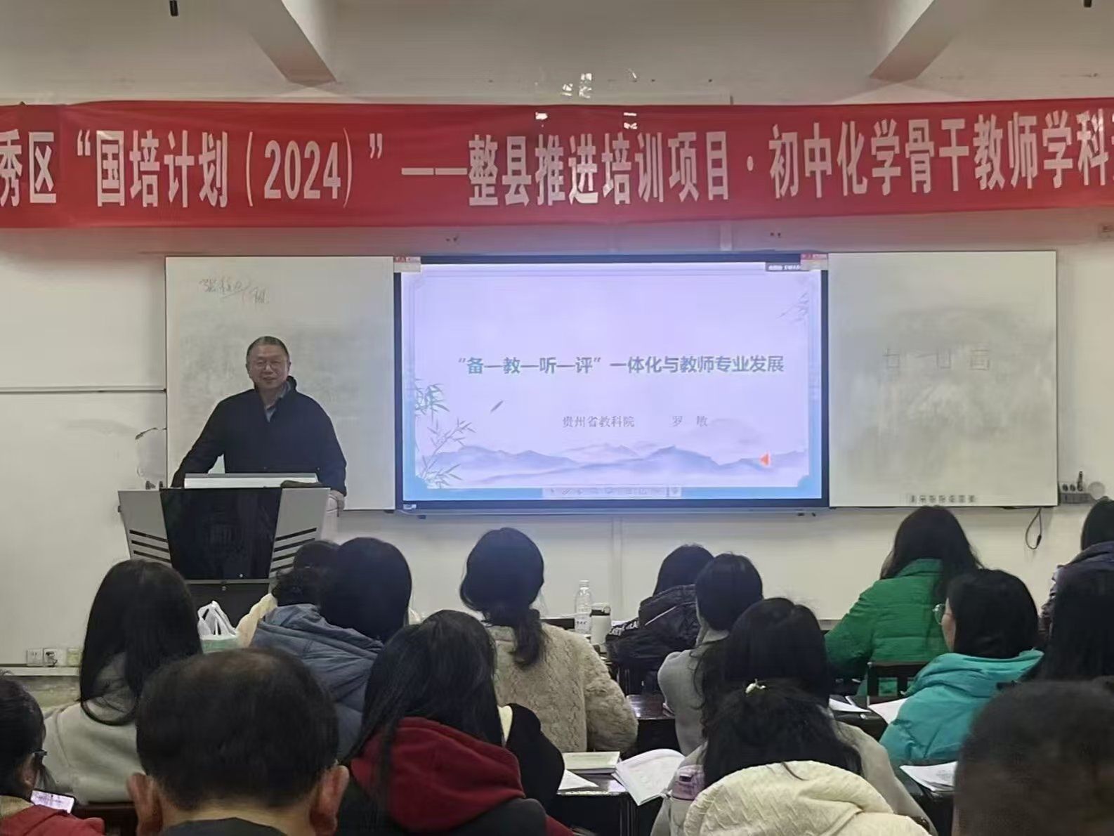 11月26日上午,全体学员聆听了由贵阳市第一实验中学王光志老师的专题讲座《核心素养下化学教学方式的转变与创新》。本次讲座旨在探讨核心素养下化学教学方式的转变与创新,为初中化学教师提供了新的教学思路和方法。接下来,贵州省教育科公司中学化学教研员罗敏老师进行了主题为“备-教-听-评”一体化与教师专业发展的专题讲座。罗老师着重阐述了备课、教学、听课和评课这四个环节的有机统一和相互融合,为学员们指明了在教学工作中实现自我提升的方向。