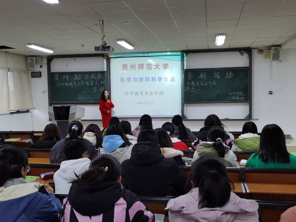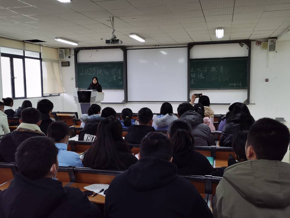 为了让2020级新生尽快融入大学,了解专业的发展需求及人才培养定位相关内容,2020年12月,williamhill威廉希尔官网2020级“新生启迪成长工程”系列活动之专业引领教育讲座在公司教学楼2511教室陆续举行。讲座邀请公司分析化学学科主任韦万丽、无机化学学科主任顾曼琪、有机化学学科主任李梅、物理化学学科教师尹晓刚四人担任讲座嘉宾,2020级科学教育、应用化学、化学、材料化学专业299人参加。讲座由2020级辅导员周能主持。