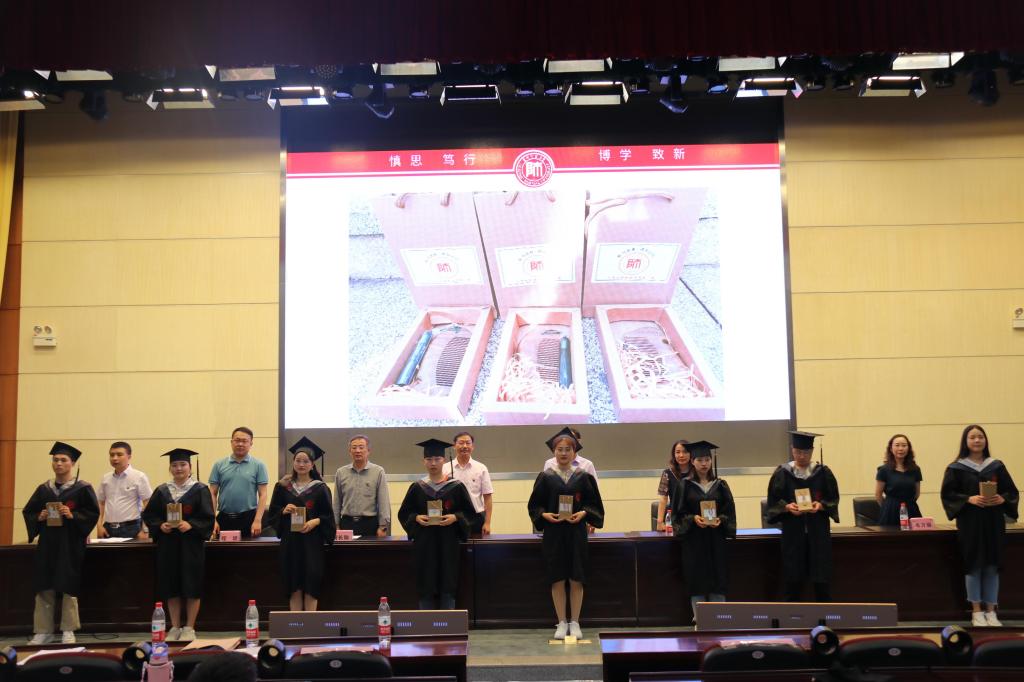 在主持人激动人心的话语中,毕业生们认真观看大屏幕上播放的公司师生临别寄语视频,并上台领取公司精心准备的专属毕业纪念品——檀木梳子,梳子上刻有师大的校徽和每位毕业生的姓名学号,这把梳子将载着公司对毕业生的美好祝福,激励着毕业生不忘初心,继续奋力前行。