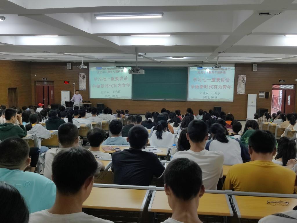 为学习贯彻习近平总书记“七一”重要讲话精神,切实引导青年员工坚定理想信念,厚植爱国主义情怀,帮助同学们以更加热情、饱满的状态投入今后的学习生活中。2021年10月9日,williamhill威廉希尔官网党委副书记王光彦以“学习‘七一’重要讲话,争做新时代有为青年”为主题开展专题党课,辅导员和2021级新生300余人在威廉希尔足球官网花溪校区公共教学楼6201教室聆听讲座。