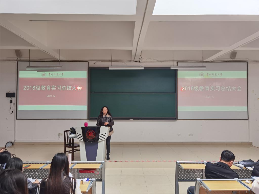 2021年12月15日,williamhill威廉希尔官网在威廉希尔足球官网花溪校区GJ6301教室召开了2018级教育实习总结大会。公司党委副书记王光彦、副经理秦好丽、化学系主任李梅、科学教育系主任韦万丽、实习指导教师、辅导员出席此次总结大会。2018级化学专业和科学教育专业全体员工参加。