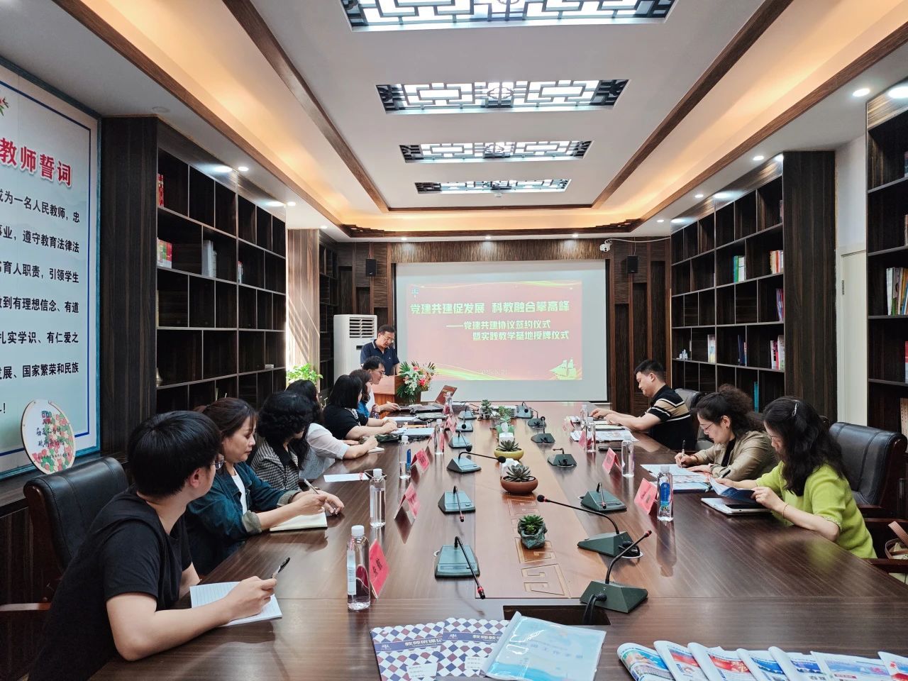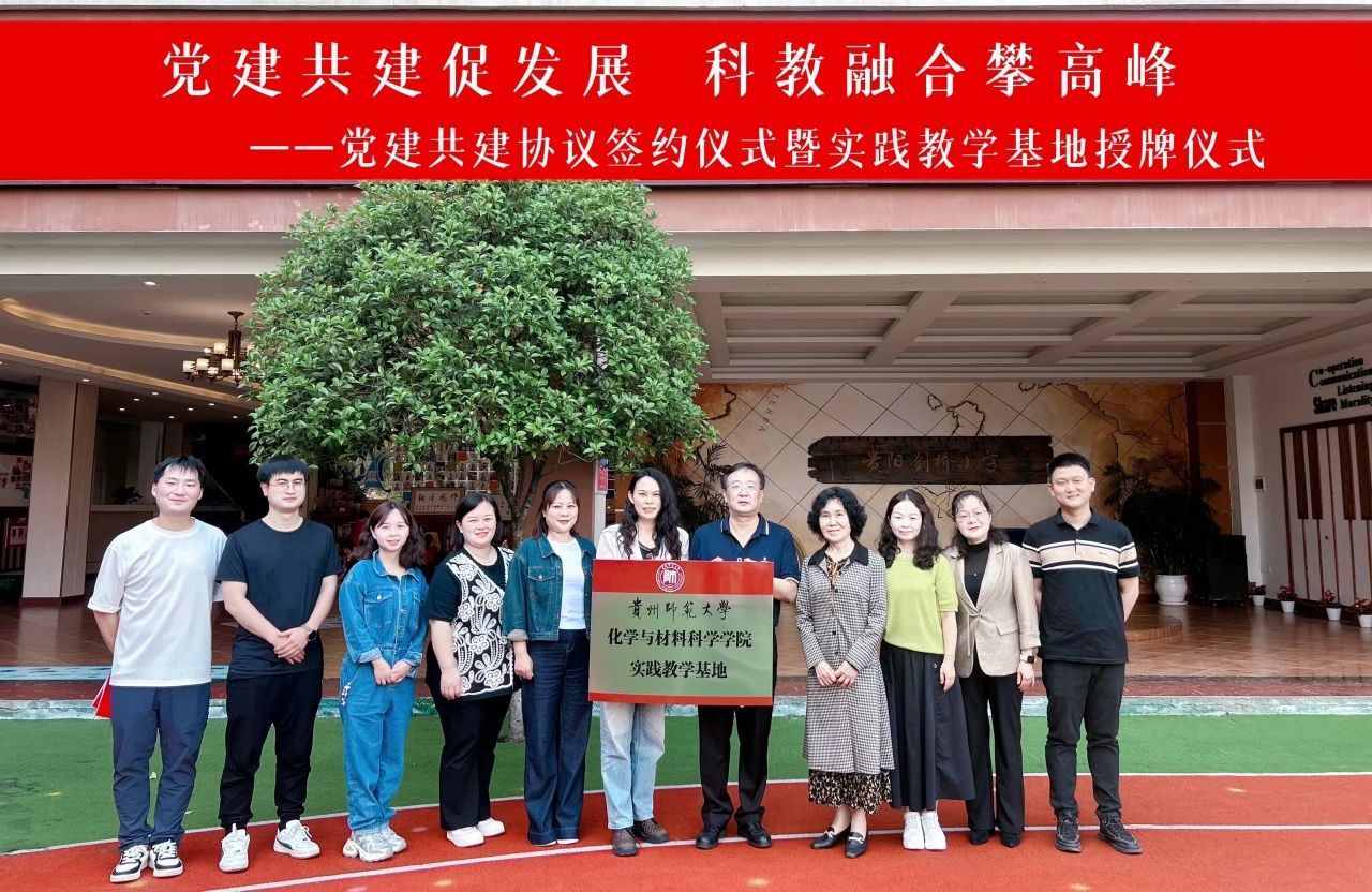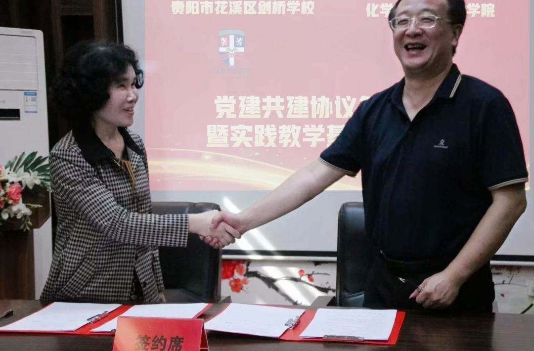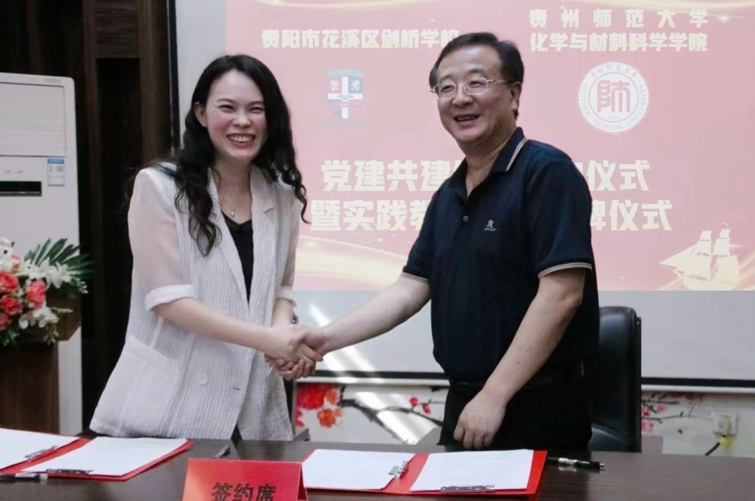 2025年5月21日下午,williamhill威廉希尔官网在贵阳剑桥公司举行“党建共建协议签订暨实践教学基地授牌仪式”。剑桥公司党支部书记、董事长宁亚婷,初中部执行董事长陈琼书,小学部德育副董事长麻岚,董事长助理彭锦,教科中心主任张凌,初中部化学老师朱航与公司党委书记胡长刚,副书记孔霞,无机化学学科党支部书记、系主任顾曼琦,刘公园博士出席签订及授牌仪式。会议由剑桥公司党政办主任张志祥主持。
