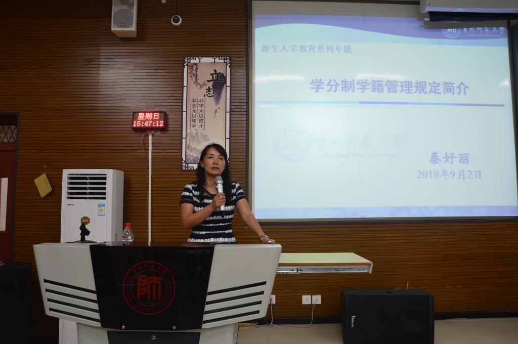 为了让2018级新生尽快融入大学,了解学分学籍管理有关规定,9月2日下午,williamhill威廉希尔官网在花溪校区公共教学楼6201教室举行“学籍管理政策”专题讲座。讲座由公司副经理秦好丽主讲,2018级全体新生参加。