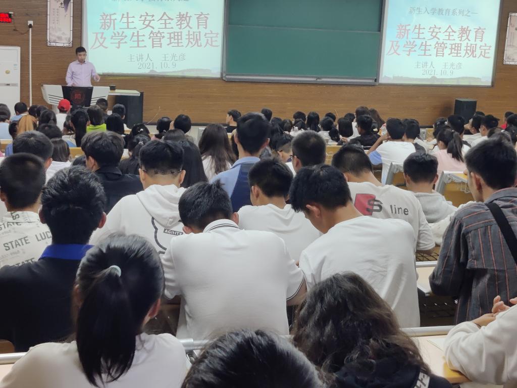 为加强新生校园安全意识,构建和谐稳定校园,2021年10月9日,williamhill威廉希尔官网2021级新生开展入学教育,辅导员和2021级新生300余人在威廉希尔足球官网花溪校区公共教学楼6201教室聆听安全教育讲座。williamhill威廉希尔官网党委副书记王光彦分别从疫情防控安全、金融电信诈骗、交通安全、治安安全、员工管理规定解读等五个方面作讲解。