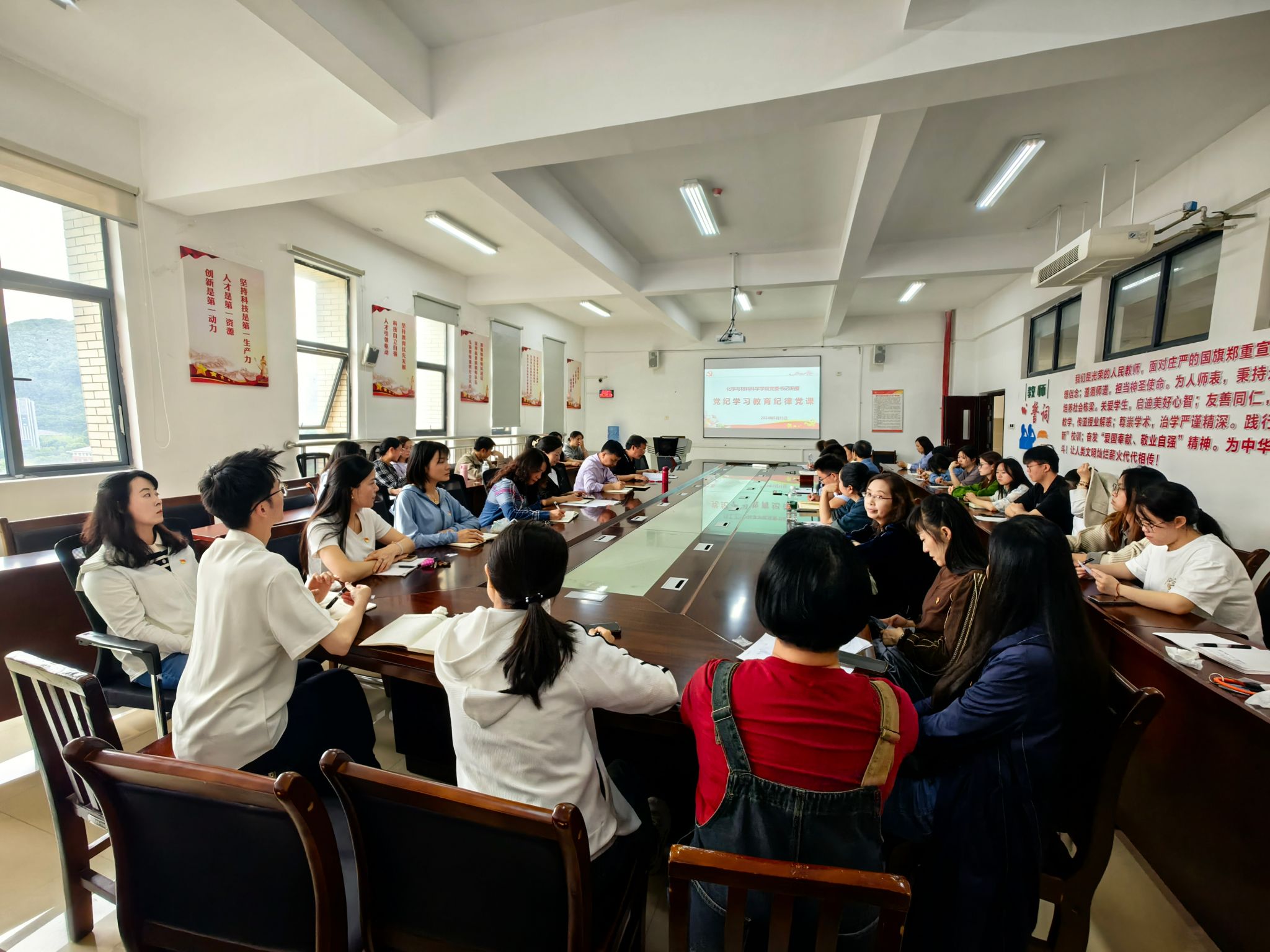 胡长刚指出,党的十八大以来,习近平总书记就全面加强党的纪律建设作出一系列重要论述,深刻阐明了纪律教育的重大意义、主要内容、方法途径和目标任务等,为深化党的纪律教育提供了科学指引和根本遵循。开展党纪学习教育,是当前公司党委的一项重要政治任务,是履行党委主体责任的重要内容。全体党员干部教师要坚持以习近平新时代中国特色社会主义思想为指导,深入学习贯彻习近平总书记关于党的自我革命的重要思想,扎实开展党纪学习教育,筑牢理想信念根基,守牢拒腐防变底线,扛牢管党治党责任,将学纪、知纪、明纪、守纪内化为日用而不觉的言行准则,坚定不移推动全面从严治党向纵深发展,持续推进党纪学习教育走深走实。