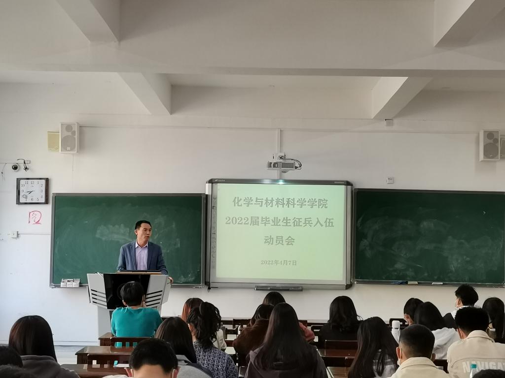 会上,黄凌云、龙星宇、张扬分别汇报2022届化学、科学教育、应用化学三个专业毕业生征兵工作开展情况以及存在的问题与对策,并布置了毕业季的相关工作,提出相关注意事项。