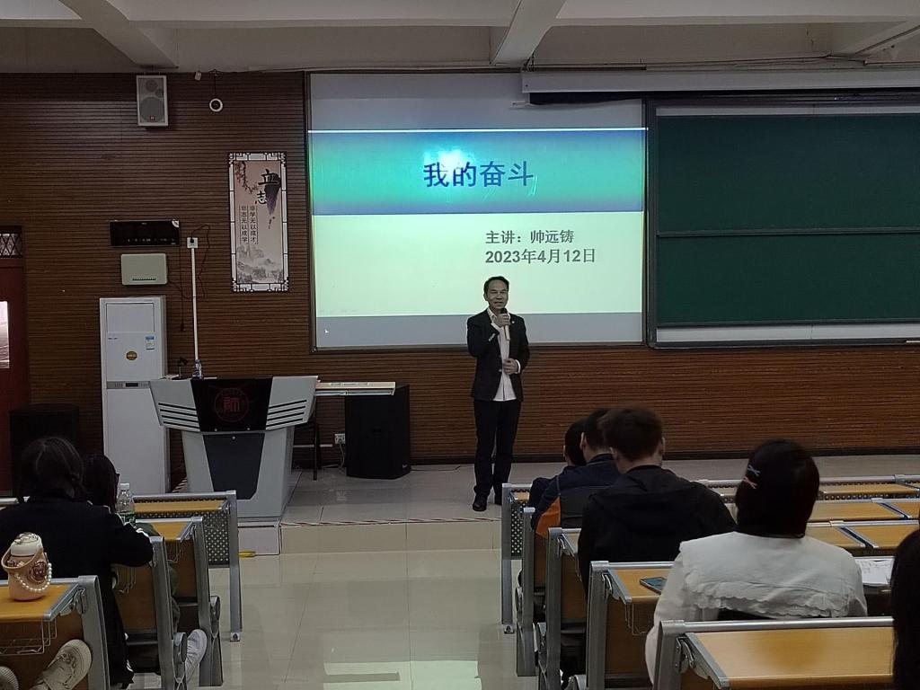 帅远铸回顾了自己在母校学习和生活的难忘瞬间,深情追忆了在校期间与老师、同学们建立的深厚情谊,深切表达了对母校多年栽培的感谢和对母校未来发展的深深祝福,并从学习、工作、升学、就业创业等多个角度向学弟学妹们分享自己的成长经验。针对大家比较关心的就业问题,他认为,第一要明确职业生涯规划,做到事事有计划;第二要正确认识自己的价值与能力,摆正姿态,寻找适合自己的岗位;第三要合理利用在校时间,不断提升综合素质,抓住实习机会,丰富自己的实习经验。